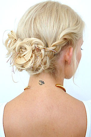 По словам Николаса Пенна младшего, владельца бостонского салона SalonCapri, самые великолепные короткие стрижки в этом сезоне блистают не только за счёт сияющих здоровых волос, но и за счёт хорошо подобранного аксессуара. Закрепите романтичные волнистые пряди винтажной брошью, или вплетите блестящее ожерелье или ленту в косу. Если вы хотите украсить пучок, Николас советует закрепить ожерелье прядками у основания пучка, а затем в верхней части. Для привлечения внимания концы ожерелья можно оставить висеть.