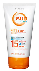 В линейке средств Sun Zone имеется специальный лосьон для тела с средней степенью защиты SPF 15. Он обеспечивает бережный уход, увлажнение и защиту от солнечных лучей.