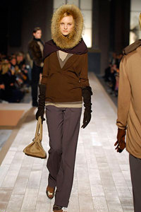 Главный образ сезона, образ соблазнительной охотницы: украшение из перьев фазана, клетчатые бриджи, кожаные сапоги без каблука и шерстяная накидка. Лук и стрелы в колчане за спиной– по желанию. Не менее популярен стиль аристократки-наездницы: шерстяные штаны, заправленные в высокие сапоги на плоской подошве, хлопковая водолазка и хлыст в руке. Если ходить по вашему городу опасно, образ фехтовальщицы предложенный Гальяно для Hermès – именно то, что вам надо. Рапира в руках защитная сеточка на лице – отпугнет любого хулигана, но привлечет внимание действительно достойных «соперников».