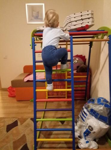Да, деревянный, там кольца висят и горка еще, которую тоже убрали чуть раньше  . С противоположной стороны клетки из каната мягкие, тоже залазить, типа как на корабле) мне ещк нравится, что он складной