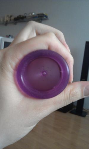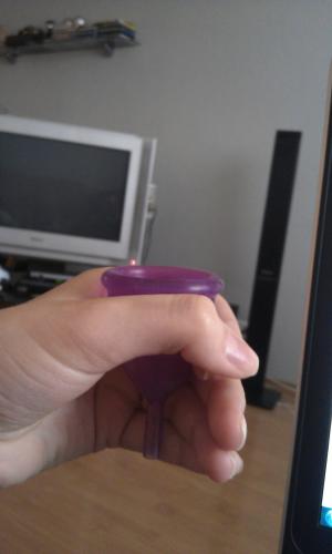 Значит, отчет по моему первому впечатлению от LadyCup. Получила я свою капу (после всех коробок и прочего) вот в таком виде:  Когда я ее вынула, получилось вот что:  Т.е. она реально маленькая (размер с). Я-то думала все, как же она там поместиться-то.. но вот ее размеры (к слову, рука у меня маленькая):   Т.е. на самом деле чаша маленькая, размером где-то с тампон, только чуток шире. По тактильным ощущениям весьма приятная, не чувствуется никаких шераховатостей на поверхности, в принципе, в руке держать приятно. Она мягкая и упругая, хорошо сгибается. У нее на поверхности вверху есть маленькие дырочки - для вакуума, я так поняла. Ну, собственно, поскольку муж убежал на встречу, я решила ее "попробовать". Сейчас у меня не критические дни, но нужно же заранее знать к чему быть готовой. Я ее простерилизовала (пару-тройку минут прокипятила в воде - у меня есть спец жестяная емкость для подобных целей), помыла руки и ... в общем, скажу я вам, что ввелась она с первого раза, ничего сложного нет (правда полной уверенности нет - не проверяла еще при КД, но то, что она вакуумно зацепилась я поняла). С выниманием тоже проблем никаких не было, я так поняла, что и расплескать содержимое можно в редких случаях - если сильно торопиться и дергаться. Внутри капа не ощущается. Только первые пару секунд (собственно, как и тампон). Пробовала с ней стоять, лежать, прыгать, садилась даже на вел (правда педали прокрутить не удалось - в доме же), прыгала по дивану (ну плюхалась на него) - не чувствуется совершенно. В общем, на первое впечатление довольна. Если и "боевые" испытания капа успешно пройдет, куплю еще одну на замену, только уже может чуть большего размера, хотя фиг его знает, посмотрим в общем.