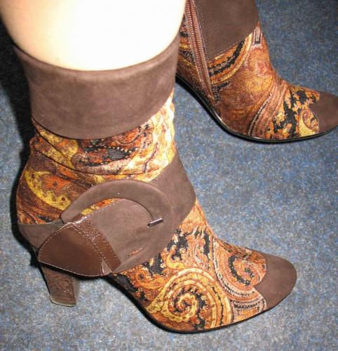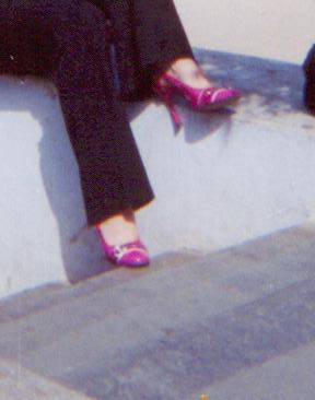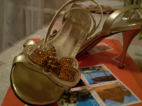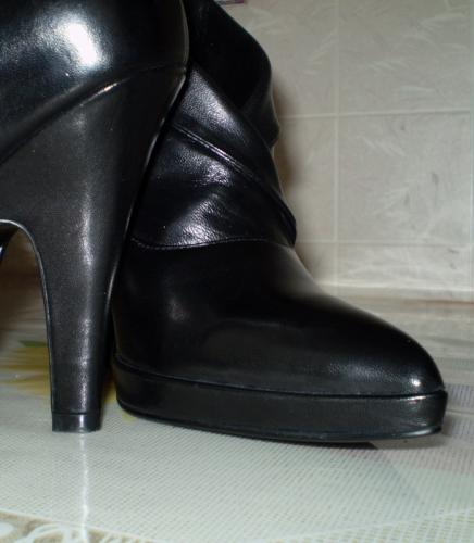 Валюш, класс! На счет высоты каблука - забавно. Это еще не высокий - ЭТО КАК РАЗ НА КАЖДЫЙ ДЕНЬ! Правда же?! Сейчас положу еще фотку.  у меня такие были в позапрошлом сезоне. Фоткане ахти. это на мобильник. Колодка невероятно удобная, мы в Тунис тогда в отпуск ездили, так я на таком каблуке по пескам шастала и ничего. Зато не жарко, как другим в кроссовках. даже в летних. а все равно нога закрыта. На это лето для походов хочу взять Экко босоножки. Они все же для пусныть получше. т.к. я те сабо на камнях угрохала в чертей. Фейга, мне темно фиолетовые очень понравились. иногда такое настроение бывает. что именно такой нежной женственности и хочется. У меня когда то босоножки были песочного цвета замшевые с открытой пяткой, а носок точно такой же с этой волной-рюшечкой.