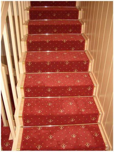 Принцип такой. Сама дорожка (и крепёжные планки) по ширине короче ступенек на ... см. Эти вот наконечники, которые на концах планок, легко снимаются.