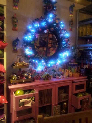 В общем, этих ниточных шариков штук 50 подвешены каждый на отдельной ниточке к потолку, висят шары в виде ёлки... Очень очень красиво.. тоже потом сфотографирую)