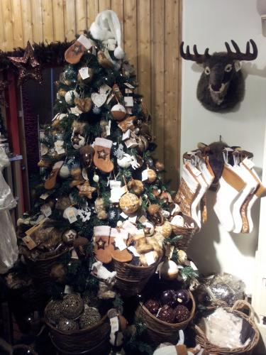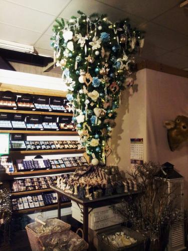 В этом году тоже в одном из кабинетов перевернутая ёлка на потолке, украшена мандаринами и красными перчиками) - потом сфотографирую.