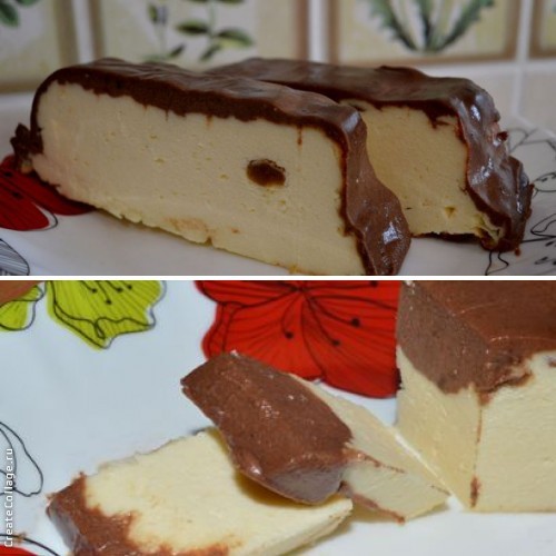 Измельчаем 300 гр галетного печенья, добавляем 3 гр ванильного сахара и 120 гр растопленного сливочного масла. Спрессовываем в форму и ставим в холодильник на 30 мин. В 750 гр творога добавляем 300 гр варёной сгущёнки, измельчаем. 120 гр желатина разводим в 70 гр тёплой воды. Добавляем это в творожную массу, перемешиваем и выливаем в форму. Ставим на ночь в холодильник и готово. П.с. Получается не очень сладкий, поэтому, по желанию, можно добавить сахар. Вместо галетного печенья я брала "наполеон", оно мне вкуснее )) А в идеале, чтобы лучше формировался низ, нужно взять "топлёное молоко". Но будет каллорийнее ))