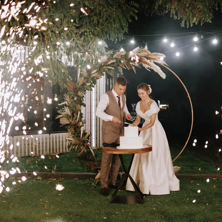 Повний пакет послуг. Молодятам не потрібно шукати десятки окремих підрядників - тут уже є особистий координатор, професійний декоратор, ведучий або DJ, музичне обладнання, жива музика, виїзна церемонія й навіть весільний торт. Ви отримуєте готове рішення "під ключ", а процес підготовки стає легким і натхненним.