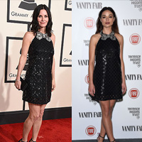 У блискучої чорної сукні Saint Laurent з декором у вигляді сріблястого банта на шиї виявилося відразу декілька прихильниць серед знаменитостей. Так, з різницею всього в декілька днів в нім з'явилися на публіці Кортні Кокс і Крістал Рід.