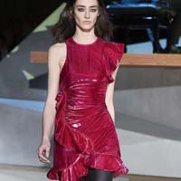 Один з найпопулярніших трендів сезону - відкриті плечі використав у своїх моделях Self - Portrait. У його інтерпретації - це сукні з одним рукавом і спокусливо оголеним плечем. Широкий волан привертає увагу до самої трепетної частини жіночо